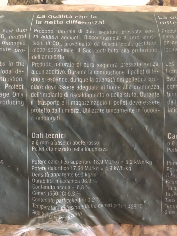 Pellet austriaco da segatura purissima di abete rosso certificato EN+A1.